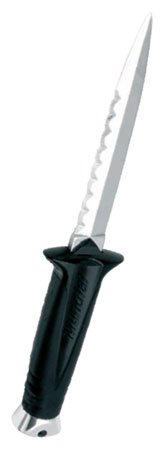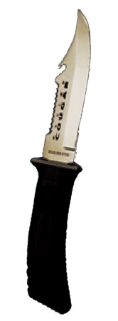CUCHILLO - BEUCHAT - MAXIMO STANDARD Hoja recta en acero inox 431 AISI con doble corte y sierra de cortahilos. Se monta sobre mango tipo prosoft antiderrapante, se presenta en una funda de policarbonato con doble sistema de seguridad.