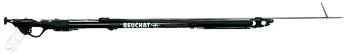 FUSIL - BEUCHAT - Marlin Competition · Apoyo con suave empuñadura ambidiestra hecha en Prosoft y apoyo de carga. · Mecanismo ultra-sensible de acero inoxidable con caja reforzada. · Sujetador del hilo hecho en acero inoxidable, puede montarse sobre la izquierda o sobre la derecha. · Tubo de aluminio de 28 mm. con guía-flecha termo-plástica integrada anti-choque y hermético a la vez, gracias a la espuma de poliuretano en su interior. · Boquilla de recarga rápida con ganchos regulables. · Flecha Rockwell de tres fases de 6.5 mm de diámetro. · Gomas Megatone de 18.3 mm. de diámetro y obús tahiti. · Amortiguador de disparo y soporte de carga.