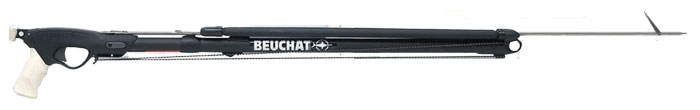 FUSIL - BEUCHAT - Mundial Competition Versión standard del fusil mundial, es un arma polivalente y eficaz para cualquier tipo de pesca. Equipado tambien con un largahilos integrado y del talón de carga "gun butt". Empuñadura con rail integrado para montar el carrete mundial. Guia flecha central, flecha inox std diametro 6,5, obus articulado, goma dynamit diametro 16 mm.